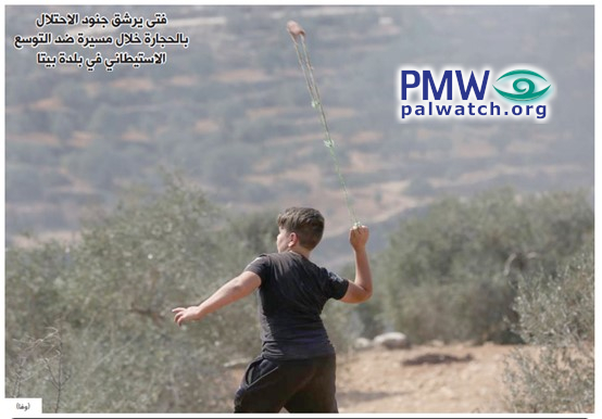 Palestinian Authority daily highlights a child throwing a potentially lethal rock