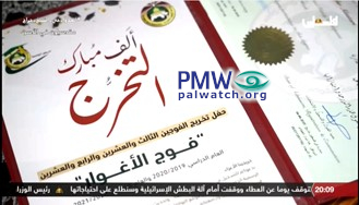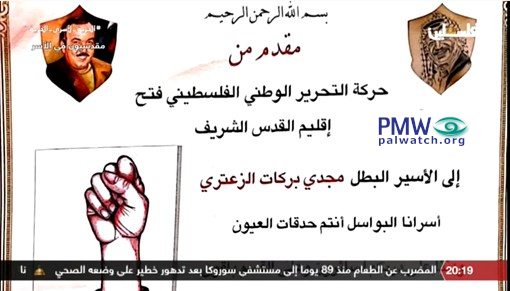 Official PA TV program Jerusalem Prisoners, on terrorist prisoner Majdi Za’atri who was involved in murder of 23 – see note below