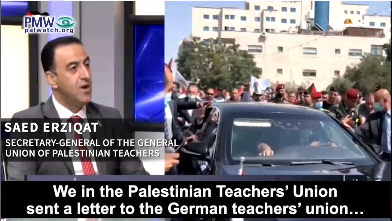 Palestinian Media Watch has written to the German Foreign Ministry and to the EU demanding that they cease all funding and cooperation with the PA Ministry of Education until the antisemitic head of its teachers’ union is removed from his position of influence over Palestinian teachers. In addition, the union must likewise condemn the libels and antisemitic hate speech disseminated in its name, retract the letter sent to the German teachers’ union and declare that it rejects all the libelous Nazi comparisons to Israel. Moreover, to prevent a recurrence, it would be wise for European and German donors to demand the inclusion of accurate Holocaust education in the PA curriculum.