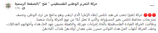 Text posted on the official Fatah Facebook page