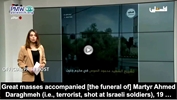 Official PA TV host: “Great masses accompanied [the funeral of] Martyr Ahmed Daraghmeh (i.e., terrorist, shot at Israeli soldiers), 19 … who ascended [to Heaven] while being present in Jenin after occupation forces invaded it…”
