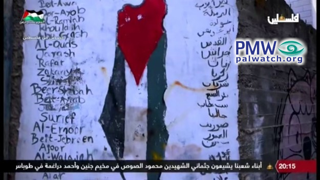 Official Palestinian Authority TV features graffiti of “Palestine” map erasing Israel