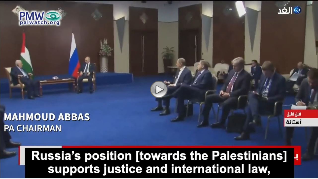 Abbas: “Russia’s position [towards the Palestinians] supports justice and international law, and from our perspective that is enough. When you say: “I support the decisions of the international institutions,” this is enough for me, because that is what I want "here…”