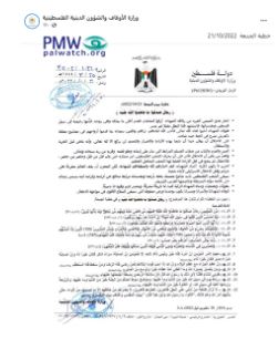 The PA Ministry of Religious Affairs’ talking points to the preachers to be used last Friday reflect the general PA ideologies that PMW has exposed for years, which promote violence and terror, sanction and support terrorists and their attacks, and urge Palestinians – especially youth – to attack Israelis and become “Martyrs” and heroes of PA society.