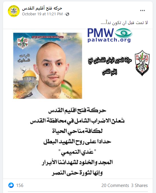 Fatah Jerusalem Facebook page calls terrorist murderer Uday Al-Tamimi “Knight of Palestine”