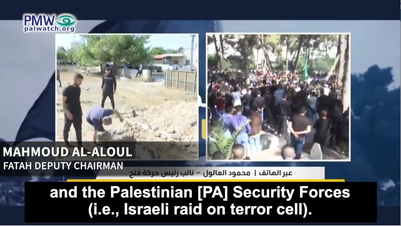 Responding to the killing of the terrorists and the exposure of the bomb making factory, Fatah Deputy Chairman Mahmoud Al-Aloul admitted that the PA Security Forces were fighting together with terrorists – the Tanzim - against Israel (in his words, “the occupation”). He added that Israel soldiers were wounded " as a result of the brave position of the Palestinian Security Forces" and that all Palestinians are “one unit” including the PA security forces and Fatah’s terror faction: