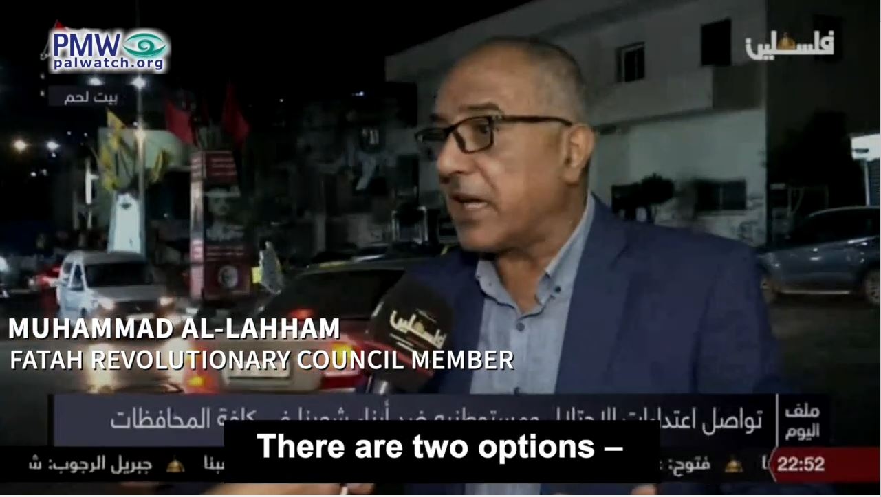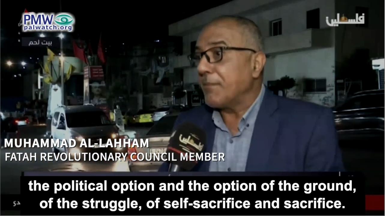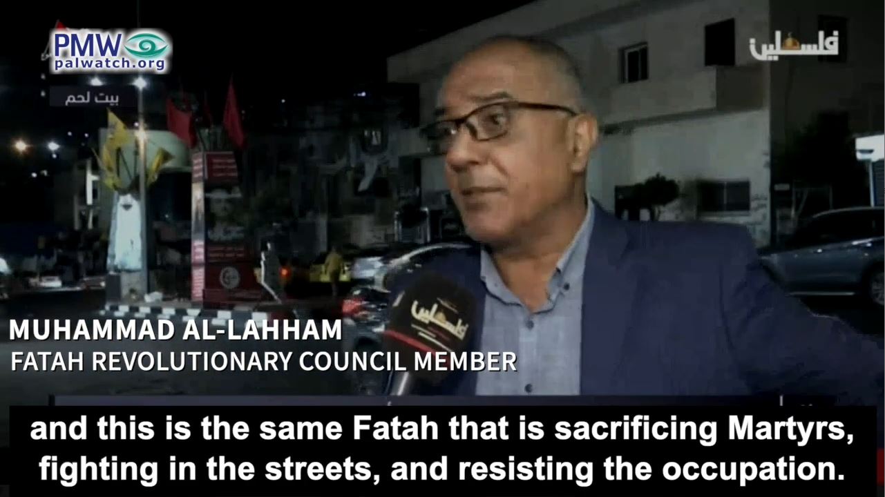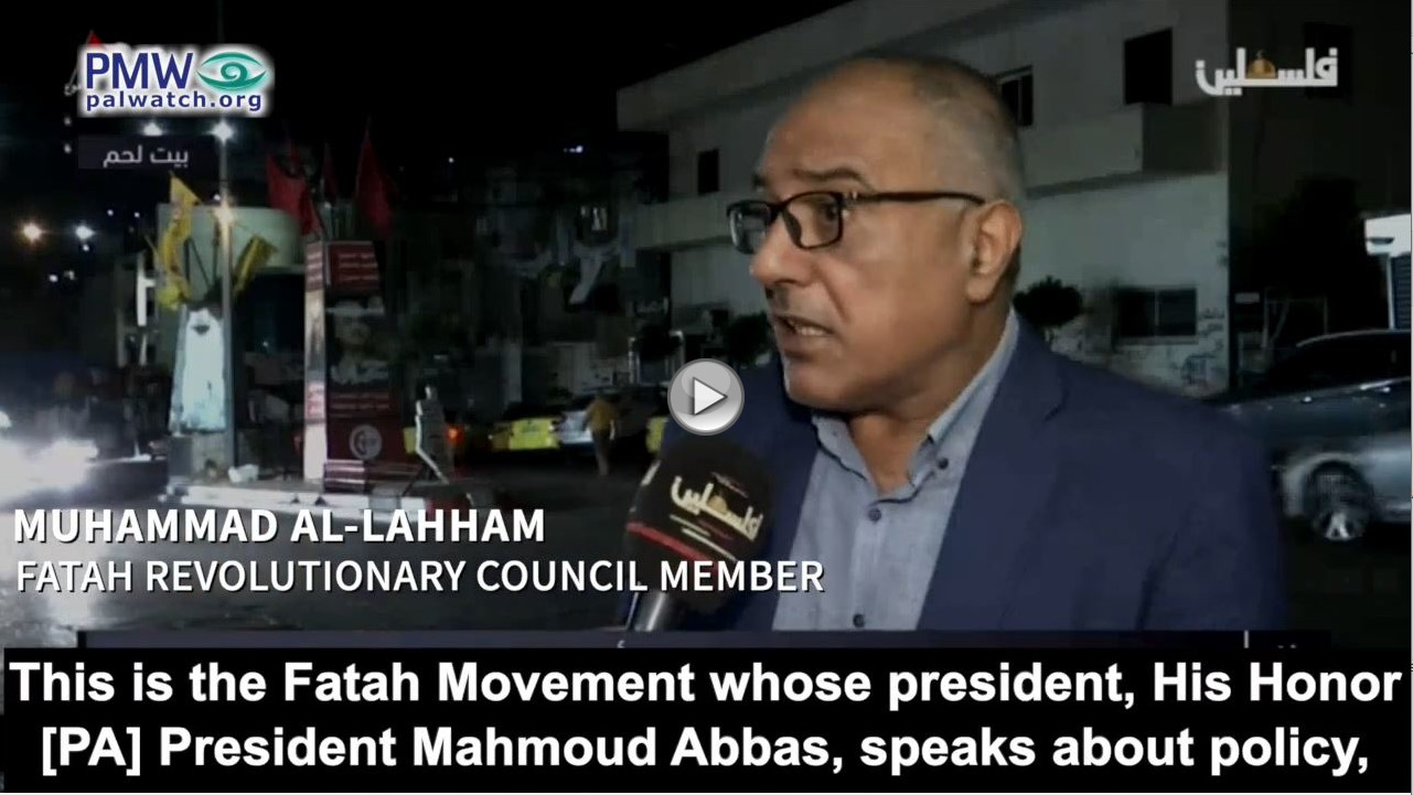 Fatah Revolutionary Council member Muhammad Al-Lahham: “This is the Fatah Movement whose president, His Honor [PA] President Mahmoud Abbas, speaks about policy, and this is the same Fatah that is sacrificing Martyrs, fighting in the streets, and resisting the occupation. There are two options – the political option and the option of the ground, of the struggle, of self-sacrifice and sacrifice. This is the philosophy of Fatah with all its elements, and Fatah’s members are not waiting for any political decision of any leader in order to carry out a patriotic action. Their Fatah education and conscience is what motivates them. Did Ra’ad Hazem (i.e., terrorist, murdered 3) – a member of the Al-Aqsa Martyrs’ Brigades, a Fatah member… wait for a decision by someone? No, only the Palestinian national Fatah education that Fatah educated him on is what motivated him to carry out this operation (i.e., terror attack). There are hundreds and thousands of other Martyrs, fighters, and self-sacrificing fighters. In the occupation’s prisons there are Karim Younes (i.e., murdered 1) and Marwan Barghouti (i.e., planned murder of 5) - [Fatah] Central Committee members, and Fatah commanders. Ahmad Sa’adat (i.e., former head of PFLP terror organization), our great sheikh, [Fuad] Al-Shubaki (i.e., PA official and weapons smuggler), and all the glorious and great names that Fatah has.