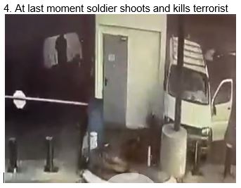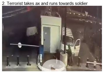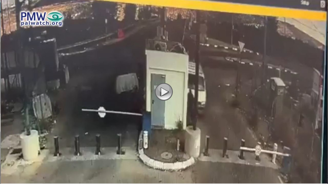 Although the terrorist is seen attacking, the PA has described him as “a civilian” who was killed by “gun-toting Israeli soldiers” and “shot by the Israeli occupation forces.” He therefore “died as a Martyr” and “ascended to Heaven.” Neither the official PA daily nor the official PA news agency bothered to mention his attack.
