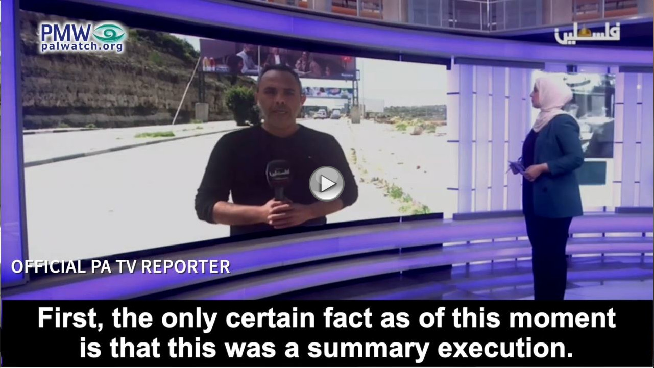The PA often portrays dead terrorists as innocent victims of Israeli “executions.” Palestinian Media Watch has documented that the PA libels as “summary executions” cases when terrorists are killed during their attacks, ignoring the actual attack.