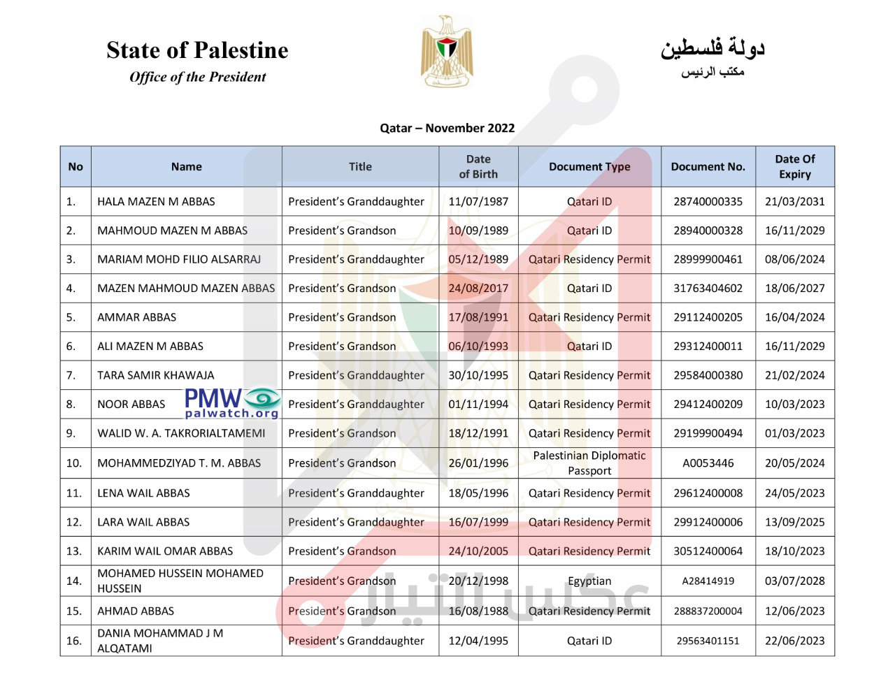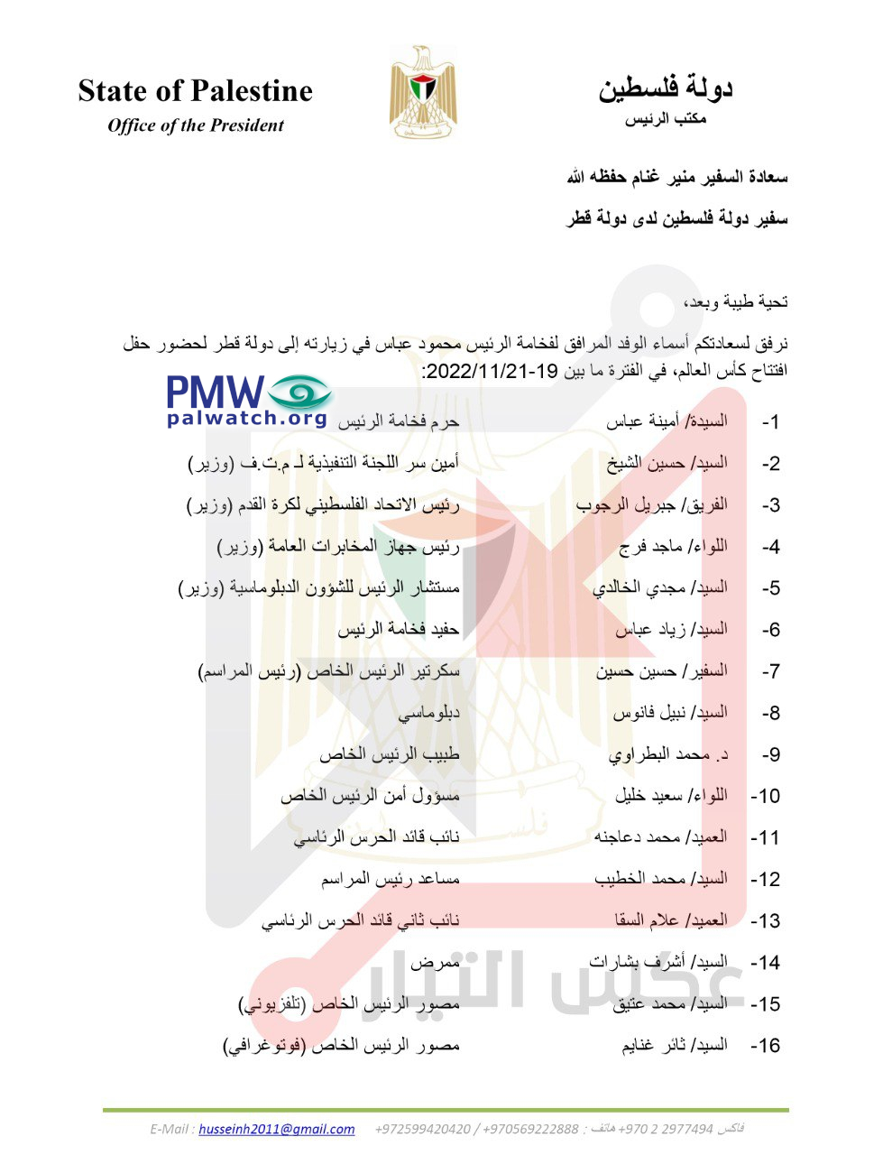 Document from the office of Abbas with the details of his grandchildren accompanying him to Qatar and the World Cup: