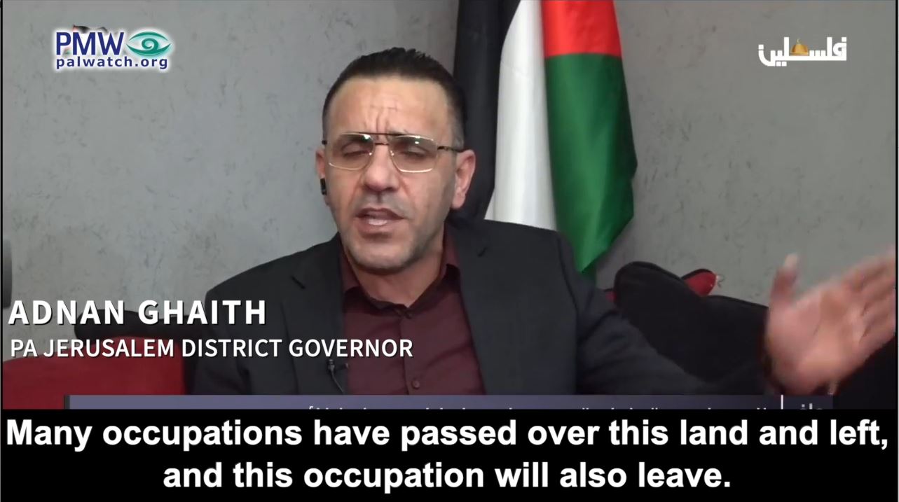PA Jerusalem District Governor Adnan Ghaith: “This occupation will end, because history has proven that oppression does not last long in this land. Many occupations have passed over this land and left, and this occupation will also leave.”