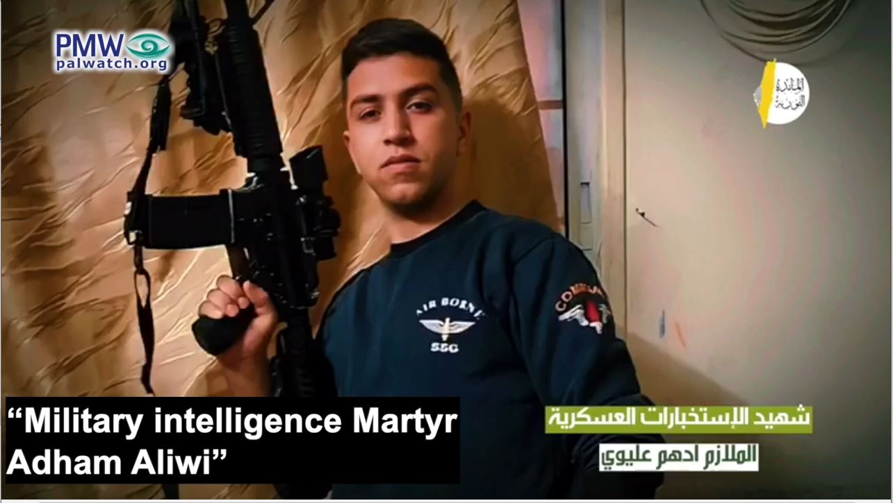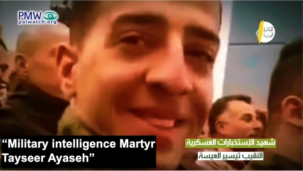 Text on screen: “[PA] military intelligence Martyr Ahmed Abed (i.e., terrorist murderer)