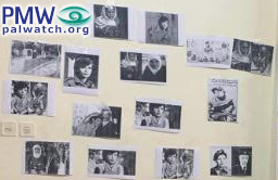 One of the walls in the room serves as a memorial displaying numerous pictures of Mughrabi, the female Palestinian terrorist who led the most lethal terror attack in Israel’s history, known as the 1978 Coastal Road massacre, in which she and other Fatah terrorists hijacked a bus on Israel's Coastal Highway, murdering 37 civilians, 12 of them children, and wounding over 70.