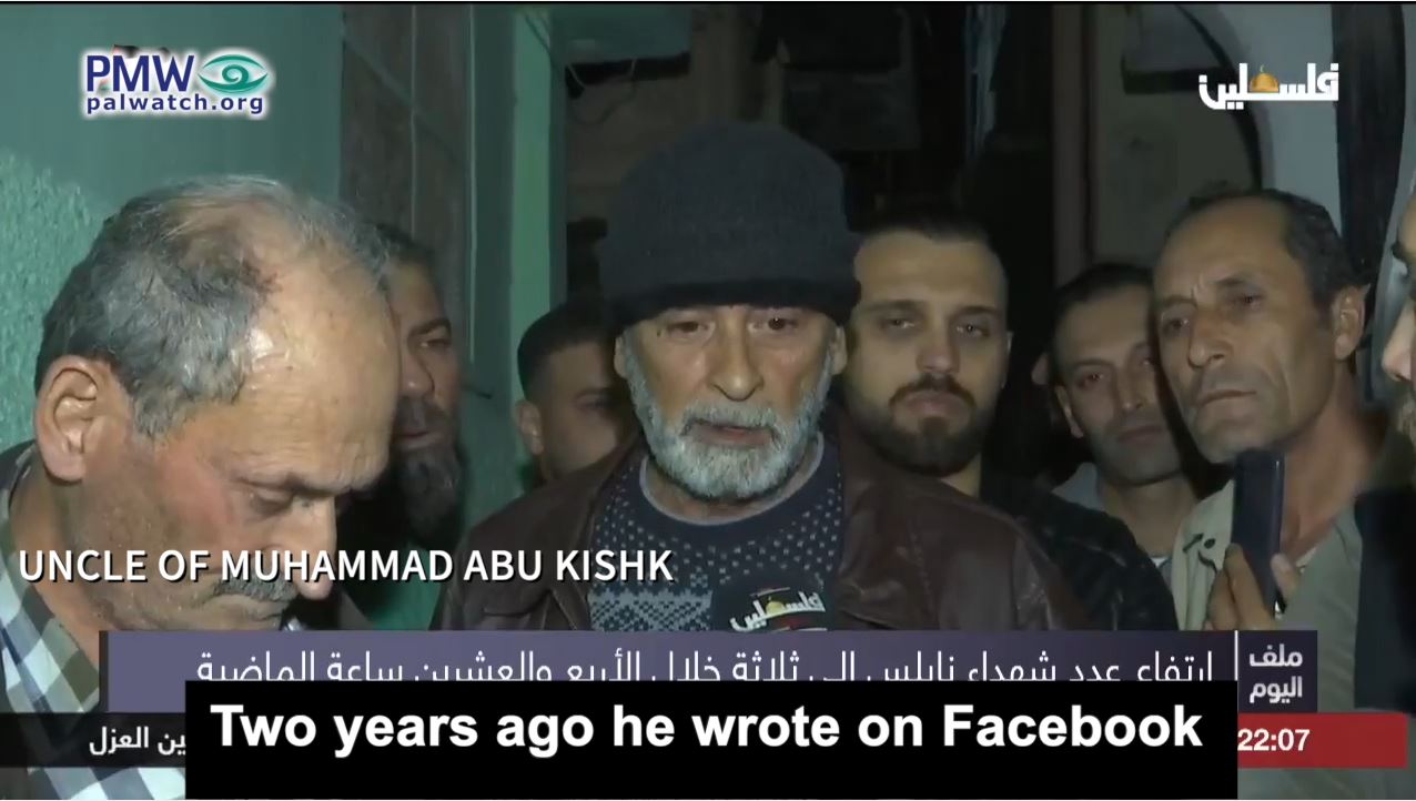 Uncle of Muhammad Abu Kishk: “Already two years ago he wrote on Facebook that he wants to carry out a Martyrdom-seeking operation (i.e., terror attack). The [Israeli] Security Agency contacted his father and we took him to the enemies, and they knew that the child is a bit like this. Afterwards he put[his post] back, and continued to seek Martyrdom, and every other day he said: ‘I want to be a Martyr.’” …