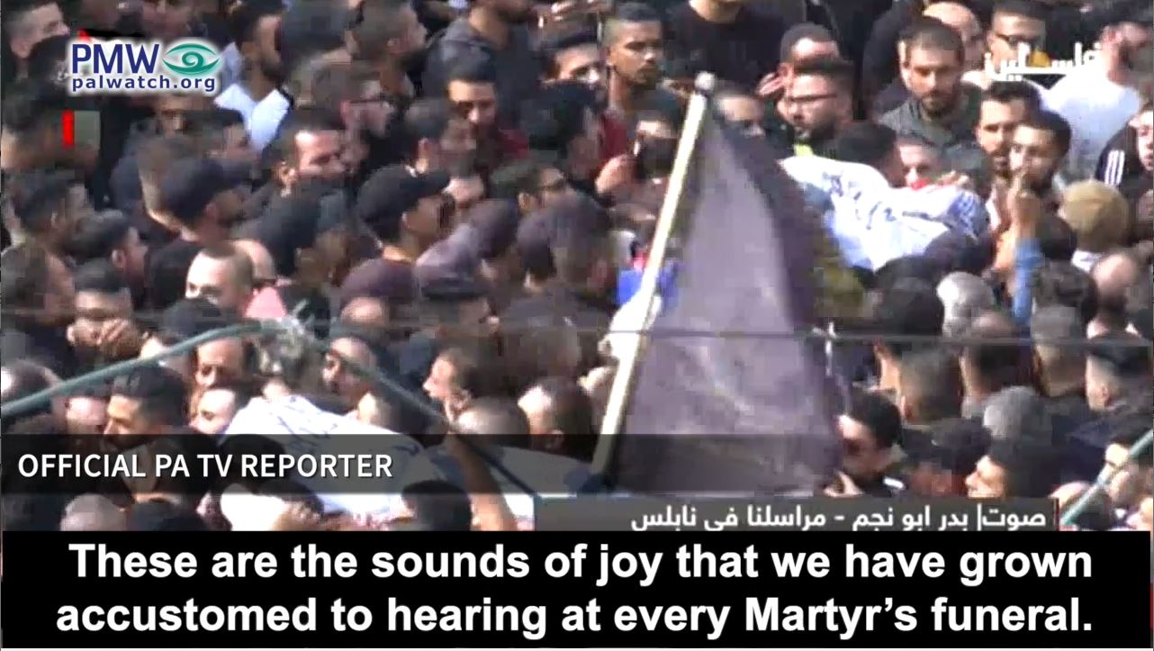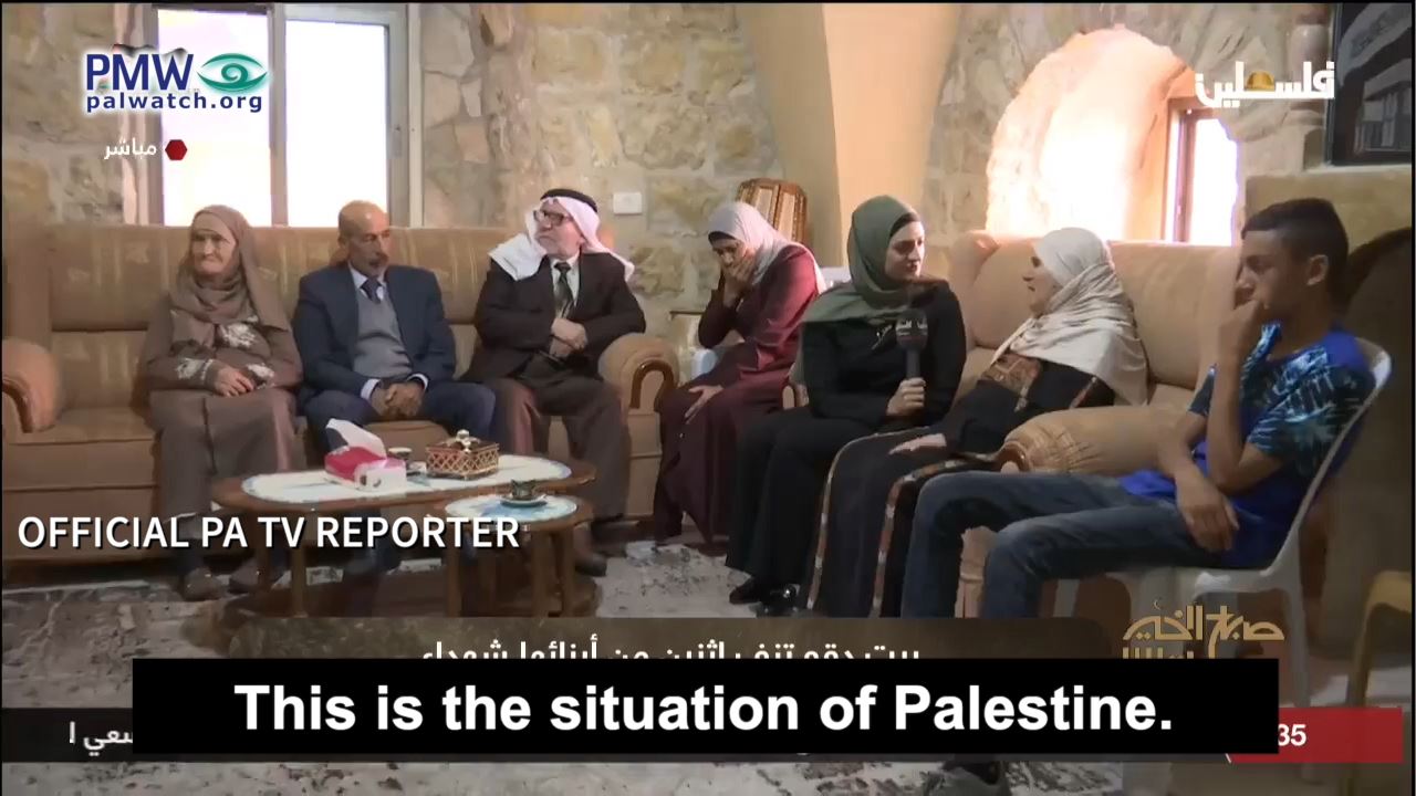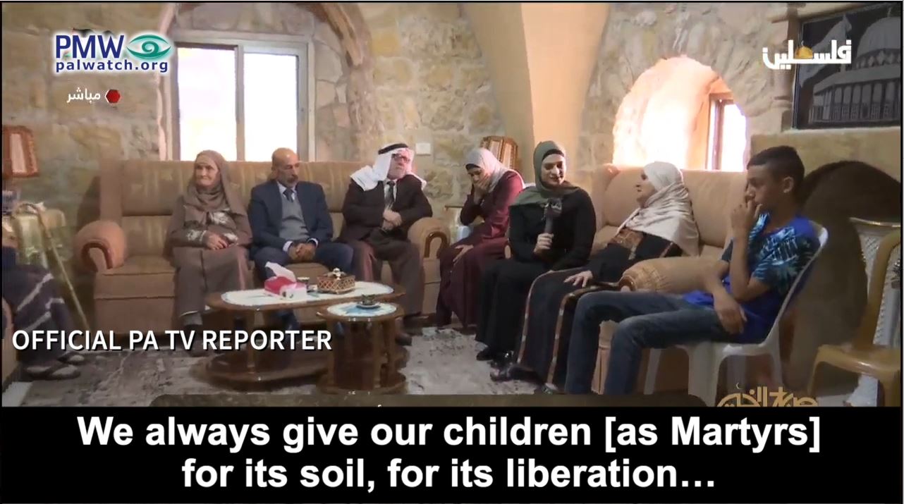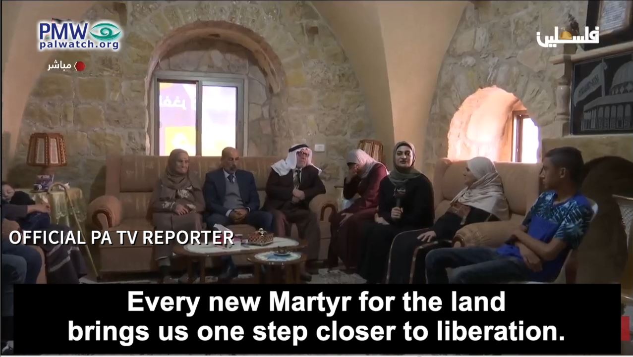 - Official PA TV reporter: “This is the situation of Palestine. We always give our children [as Martyrs] for its soil, for its liberation… Every new Martyr for the land brings us one step closer to liberation”