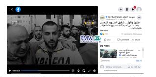 The image shows the funeral procession of a “Martyr” wrapped in the Palestinian flag. On the right is an image of terrorist Raed Al-Naasan in his PA Security Forces uniform.
