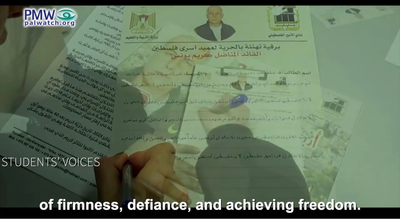 “The Bethlehem High School for Girls, in partnership with the Palestinian [PA-funded] Prisoners’ Club, the [PLO] Commission of Prisoners’ Affairs, the Association of Released Prisoners, and the [PA] Ministry of Education, launched [a campaign of] 40,000 letters to the most veteran prisoner Karim Younes as a message of love, gratitude, and appreciation for his resolve inside the occupation’s prisons…”