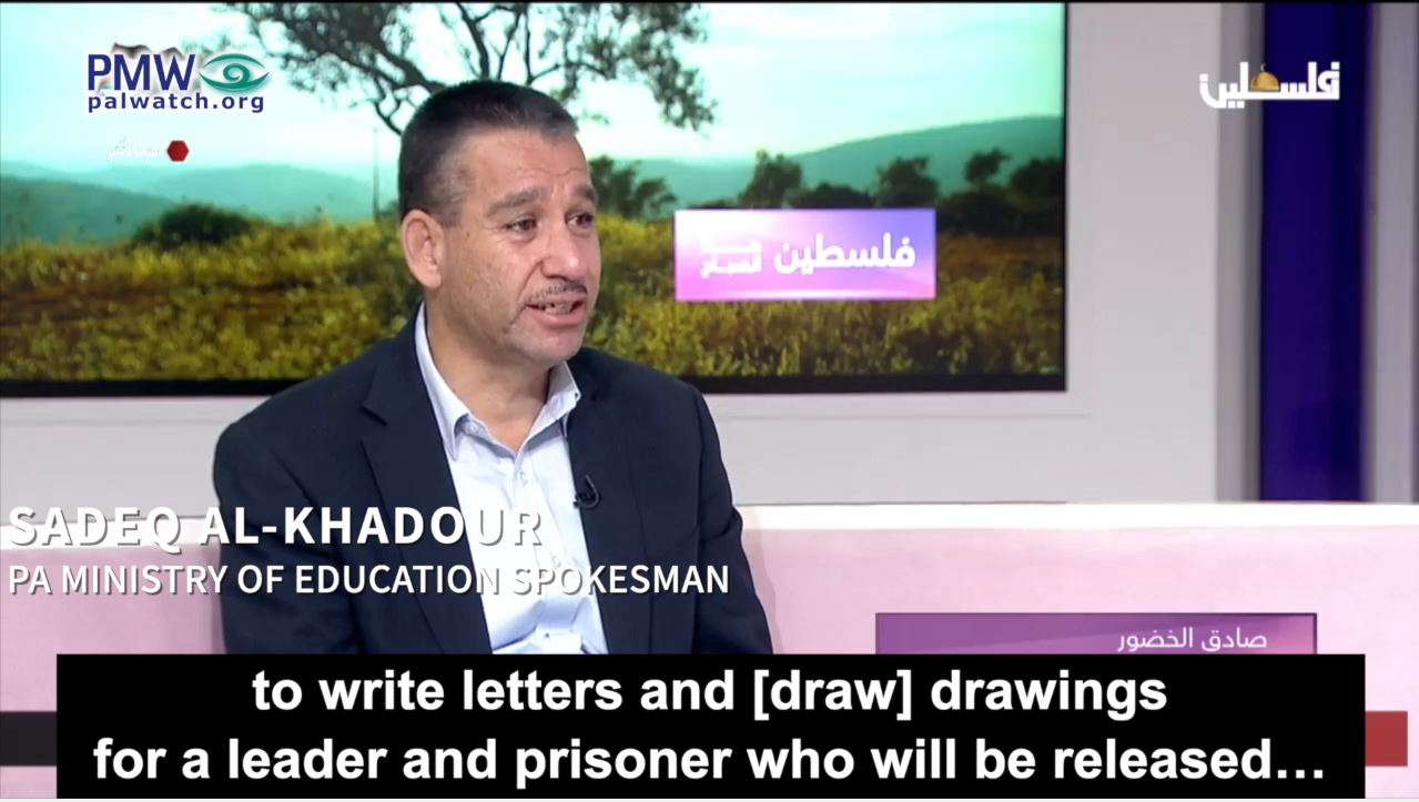 PA Ministry of Education Spokesman Sadeq Al-Khadour: “. Letters will be [written] until reaching 40,000 letters, which Allah willing will be given to released prisoner Karim Younes immediately upon his release. We in the Ministry of Education are proud that our Palestinian teachers, when we chose this day, the teachers are continuing with values and lead the students to peaks… Karim Younes deserves all of this loyalty from us and from our educational family.”