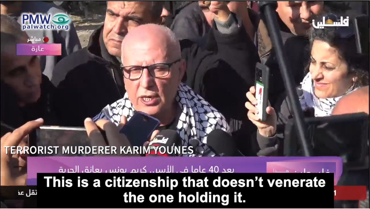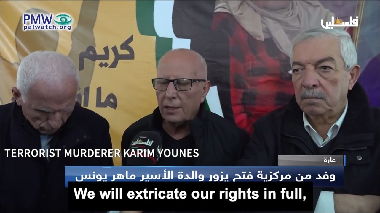 Terrorist murderer Karim Younes: “We are continuing on our path despite the coercion and Judaization, despite the policy of expulsion and ethnic cleansing. We are continuing. We will extricate our rights in full, and we will say once again that all of Palestine is ours.”