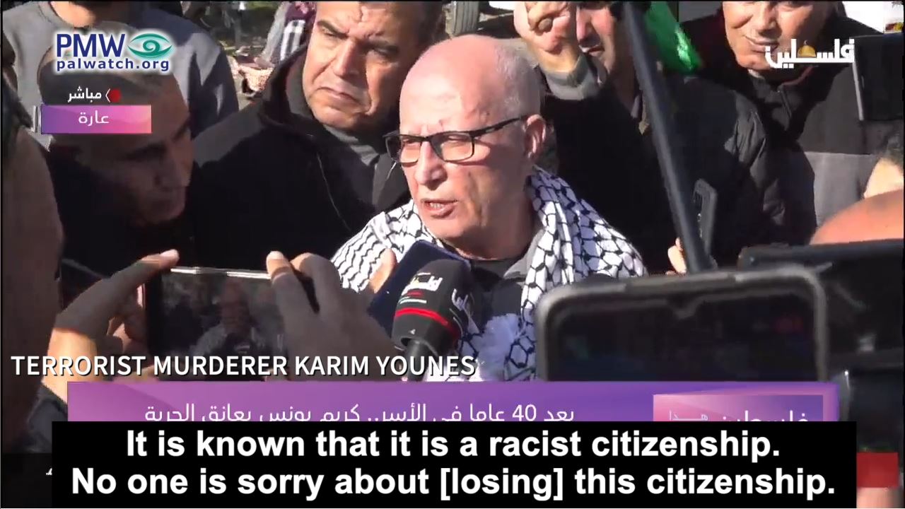 Terrorist murderer Karim Younes: Everyone knows that the Israeli citizenship - and the Israeli passport - is the most hated passport in the world. This is a citizenship that doesn’t venerate the one holding it. It is known that it is a racist citizenship. No one is sorry about [losing] this citizenship. However, we will continue to insist on remaining in our lands, in our homes, on our land, and in our cities and villages. This is what we have learned, and this will always be our goal… We are Palestinians before anything else. The Israeli identity card and Israeli passport were forced upon us. No one is sorry about [losing] the Israeli passport. Let them do whatever they want.”
