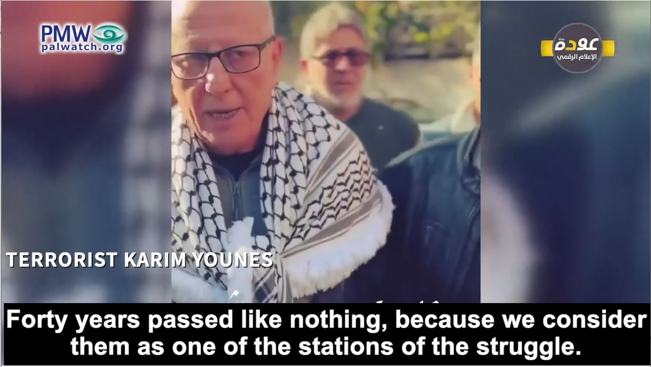 Terrorist murderer Karim Younes: “I’m proud I was among those who gave and sacrificed for Palestine, and we were prepared to sacrifice more for the freedom of Palestine. Forty years passed like nothing, because we consider them as one of the stations of the struggle.”