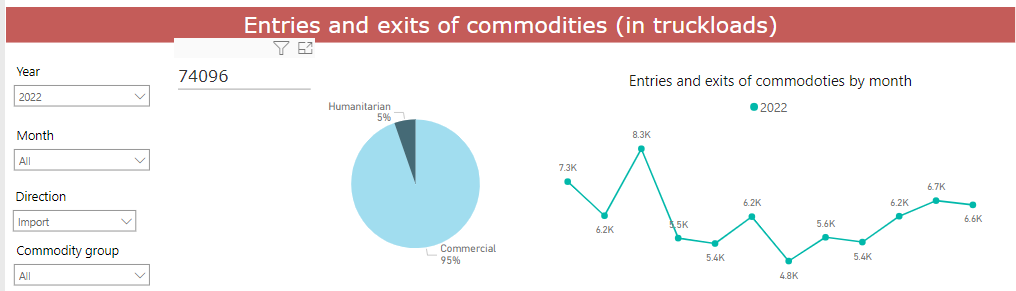 Alongside the entry of the Gazans into Israel, OCHA also reported that 74,096 truckloads of commodities entered Gaza from Israel via the Kerem Shalom crossing in 2022. According to the statistics, only 5% of the truckloads were carrying humanitarian products.