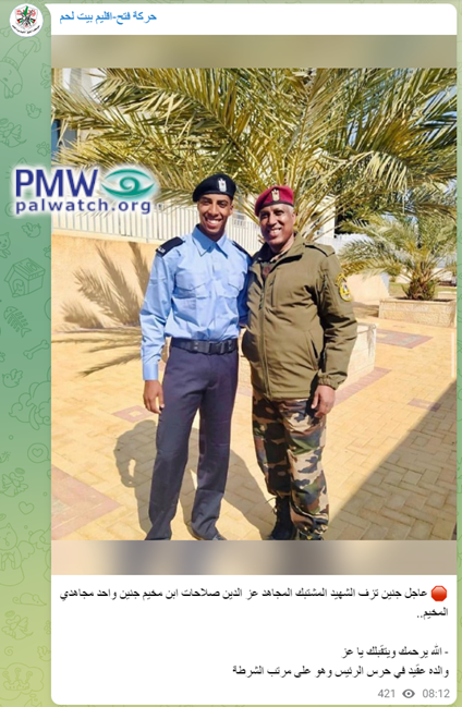 The Fatah Movement – Bethlehem Branch posted images and text on its Telegram channel