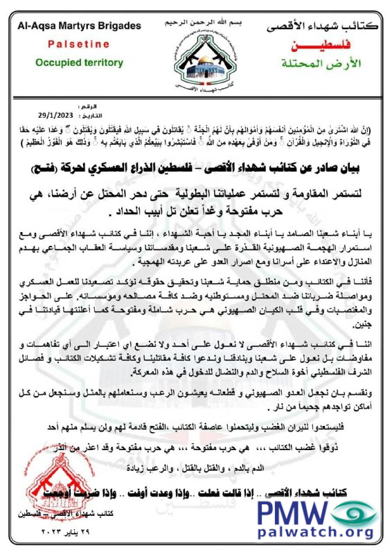 Text of statement: “The Al-Aqsa Martyrs’ Brigades