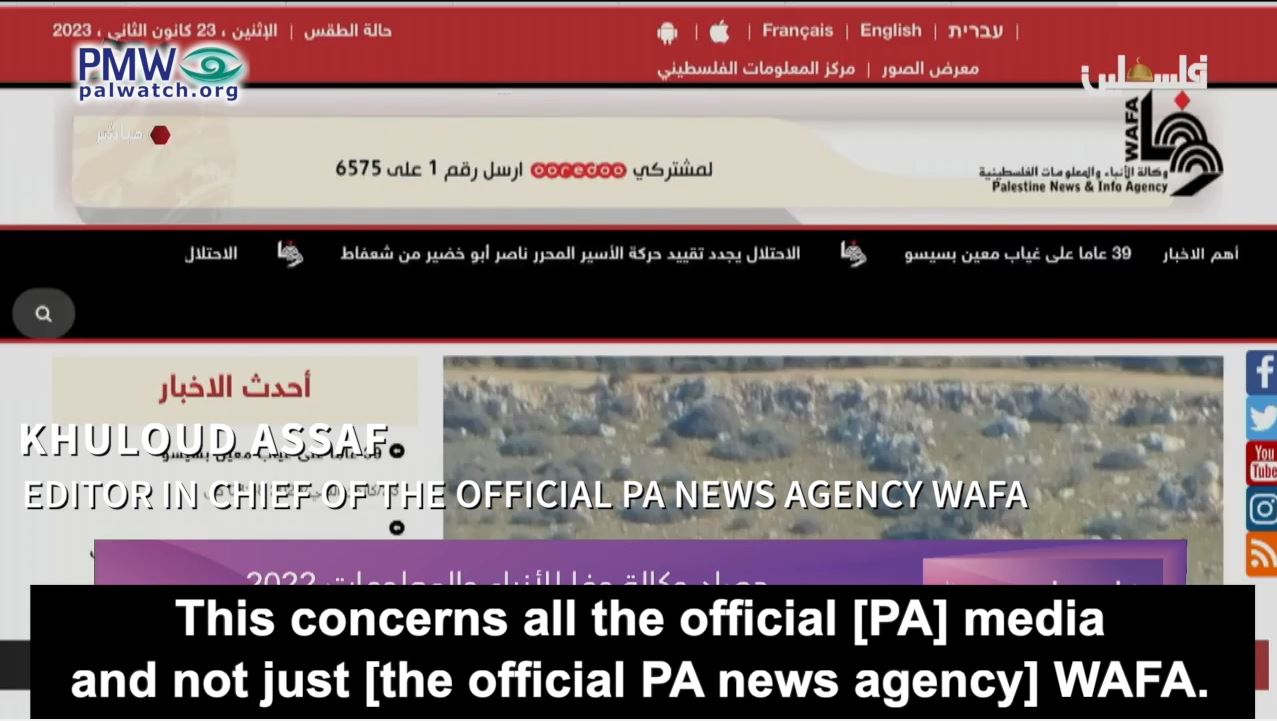 - Official PA news agency WAFA and all other official PA media function as “governmental offices” - not true media outlets