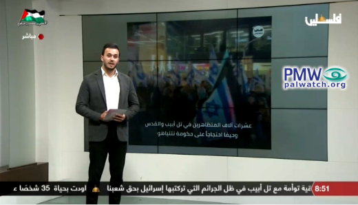 Official PA TV host: “For the third time since [Israeli Prime Minister Benjamin] Netanyahu was appointed prime minister, Israel entered the most severe internal crisis in its history, according to the commentators. More than 120,000 people from among the settlers and members of the opposition in Tel Aviv, Haifa, Jerusalem, and Be’er Sheva demonstrated in protest against the policy of the new government, which proposed changes that are liable to grant the government full authorities to interfere in jurisdiction, which the experts view as a coup against democracy (the proposed judicial reform seeks to limit the Supreme Court’s ability to overturn laws and government decisions based on “reasonableness,” and allow the Israeli Parliament to overturn Supreme Court rulings by majority vote -Ed.).”