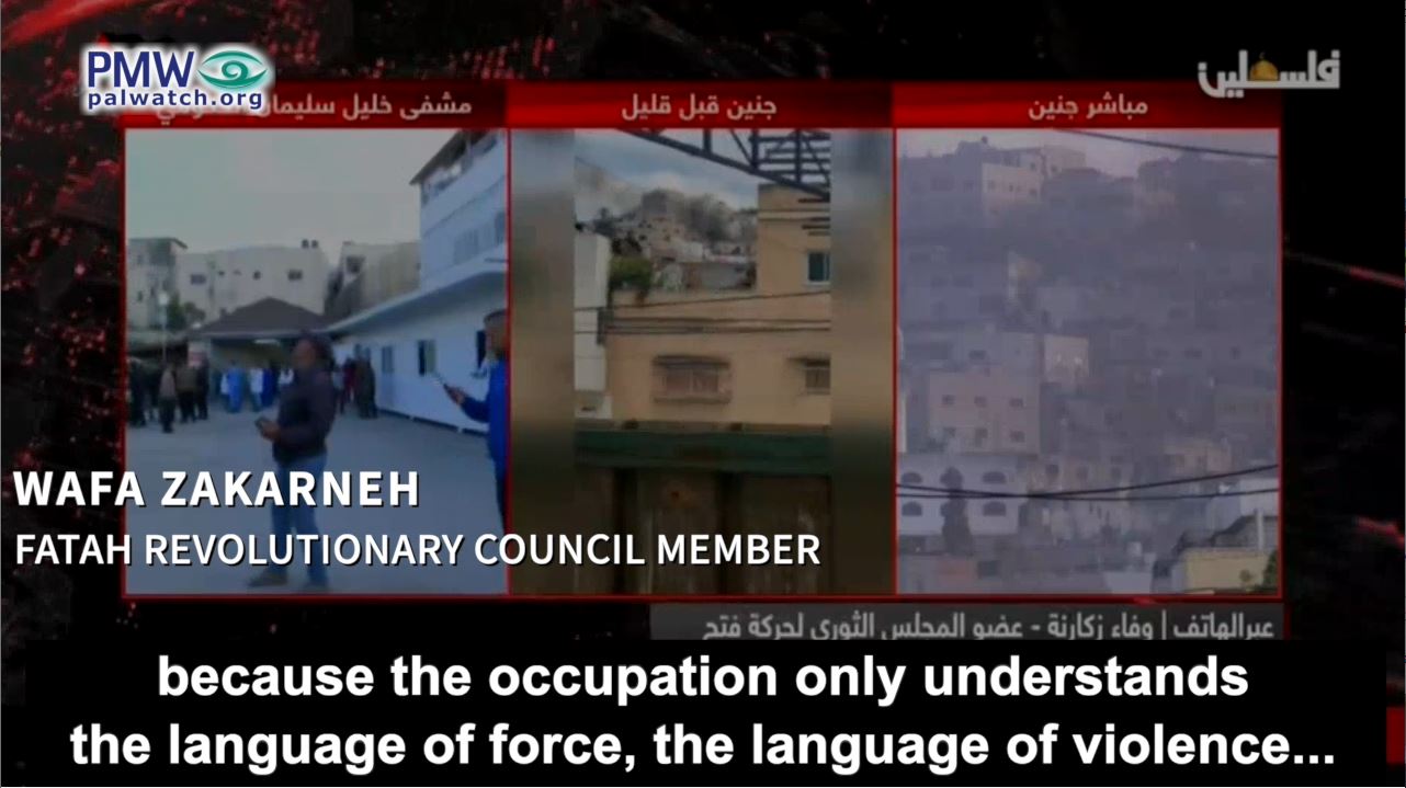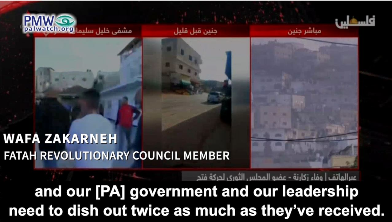 Fatah Revolutionary Council member Wafa Zakarneh: “Our resistance members need to strike the Zionist depth (i.e., inside Israel), because the occupation only understands the language of force, the language of violence... Our people needs to fight, and our [PA] government and our leadership need to dish out twice as much as they’ve received.”