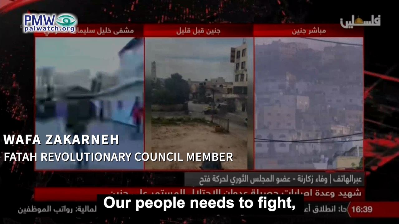 Zakarneh called for terror in “the Zionist depth” during a live PA TV broadcast about a gun battle in Jenin in which terrorist Abd Al-Fattah Kharousha, who murdered 2 Israeli brothers, resisted arrest, and was killed along with 6 other terrorists: