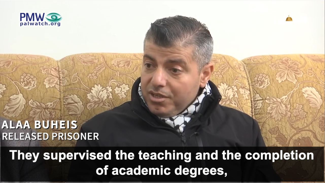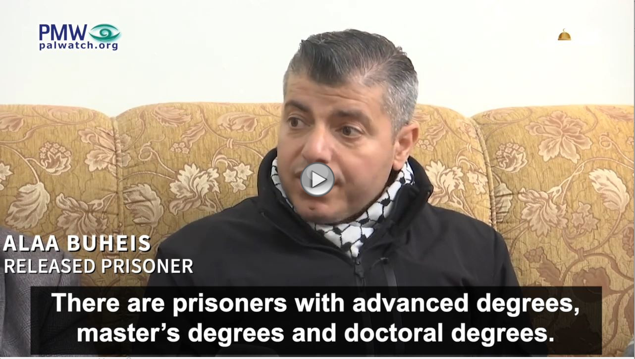 A newly released prisoner confirmed PMW’s findings, explaining that imprisoned terrorists with “advanced degrees” “serve as teachers” in prison, so that their less educated inmates can earn academic degrees as well: