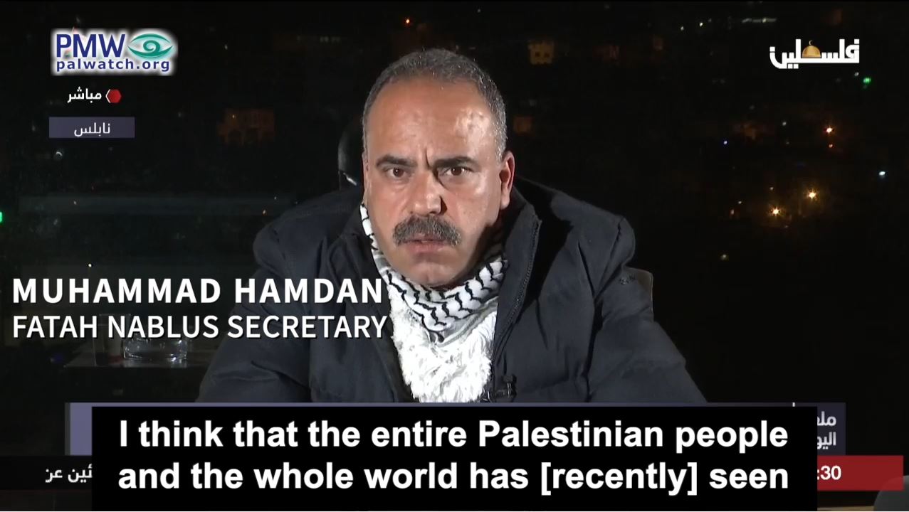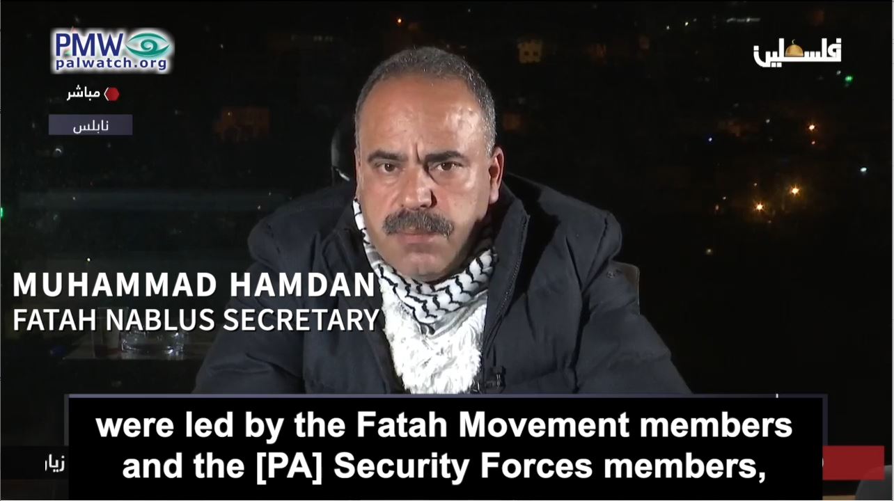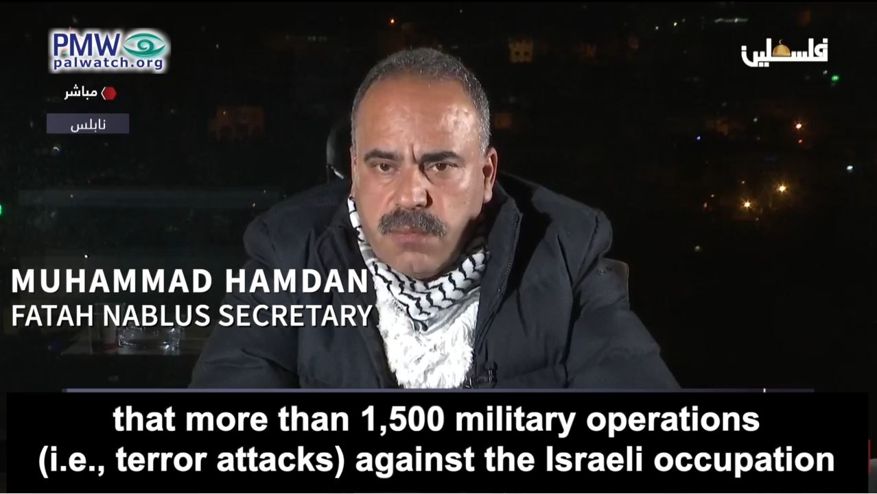 Secretary of Fatah’s Nablus branch, Muhammad Hamdan, stated last week that during the recent confrontations members of Fatah and the PA’s Security Forces have “led” “more than 1,500 military operations” against Israel, using the PA’s terminology for terror attacks: