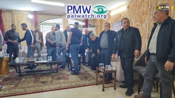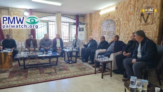 Posted text: “Two Fatah Movement Central Committee members Azzam Al-Ahmad and Tawfiq Tirawi console the mourners of Martyr Abd Al-Fattah Kharousha (i.e., terrorist, murdered 2 Israeli brothers).”