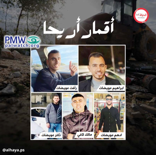 The official PA daily printed the image below with the headline “the moons of Jericho,” with photos and names of 5 Hamas terrorists who were killed shooting at Israeli forces who came to arrest a Hamas terror cell.