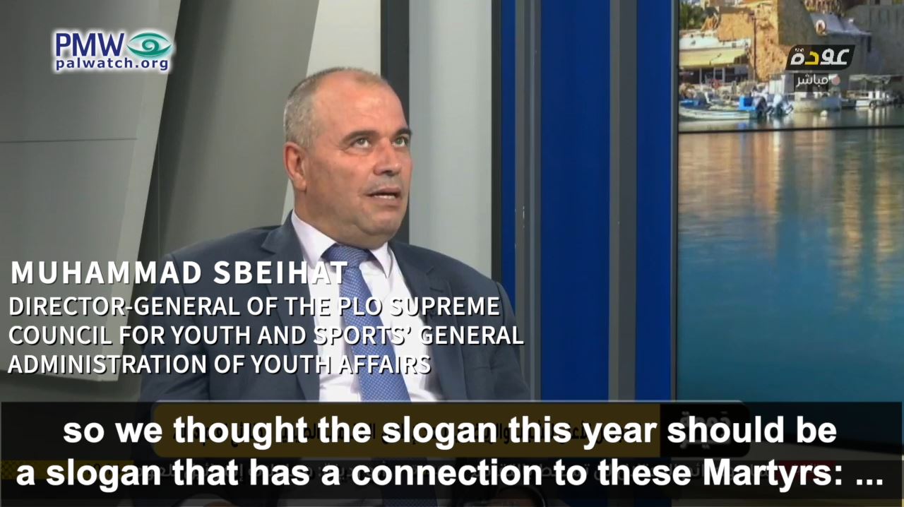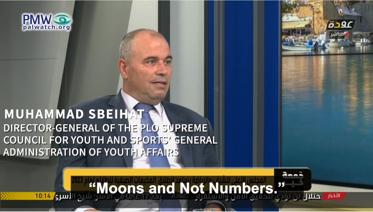 Director-General of the PLO Supreme Council for Youth and Sports’ General Administration of Youth Affairs Muhammad Sbeihat: “It is always the [PLO] Supreme Commission for Youth and Sports’ instructions that there be a national aspect, whether it’s the slogan or even the content of the summer camps... This year … it is the bodies of the Martyrs (i.e., dead terrorists) that are being held by the Israeli occupation... [Israel calls them] ‘the Martyrs of the numbered cemeteries,’ so we thought the slogan this year should be a slogan that has a connection to these Martyrs…: ‘Moons and Not Numbers.’ ‘Moons’ as you know, and especially in this period, symbolize the Martyrs. The Martyrs whose bodies are being held will be part of the program that will be utilized during this [summer’s camp] program.”