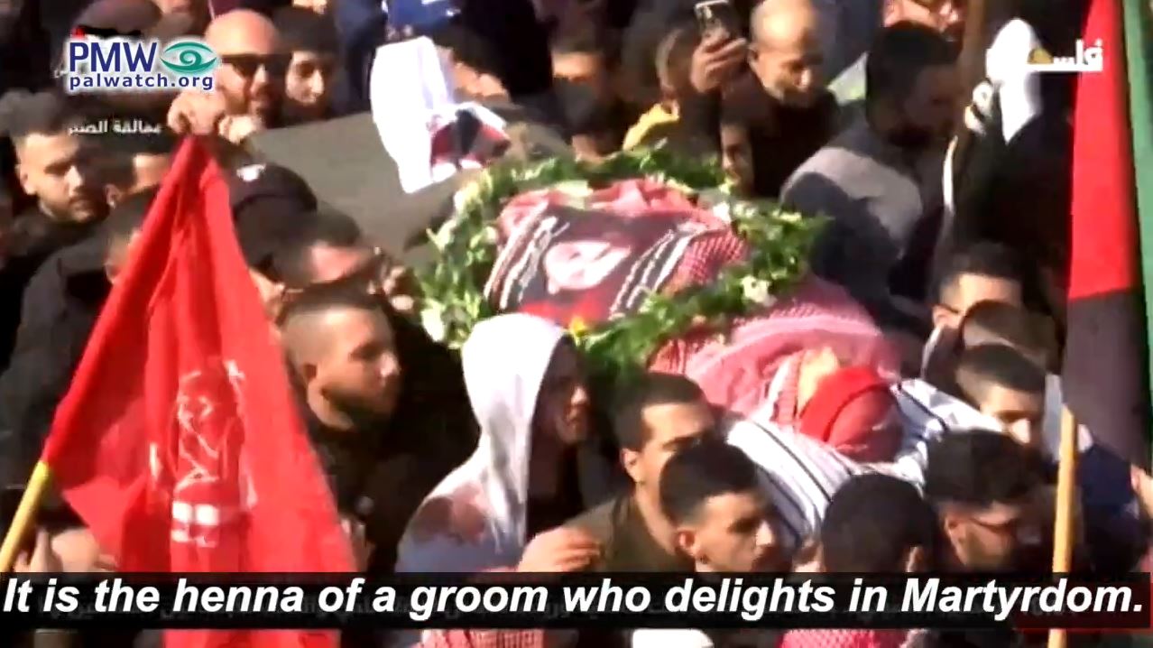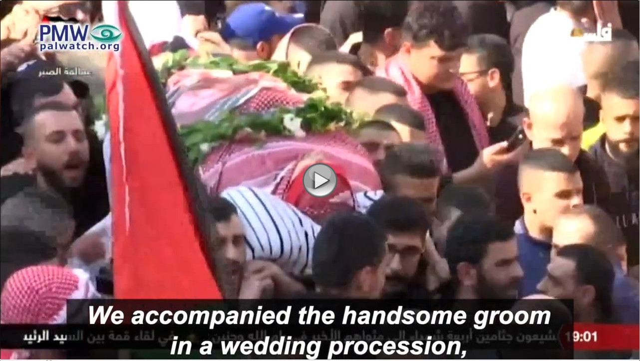 The desire to die as “Martyrs” for “Palestine” is a notion the PA instills in Palestinians from early childhood. Palestinian Media Watch has documented that children are taught that it’s an honor to die fighting Israel, youth are told they will become “grooms” who wed the Virgins of Paradise.