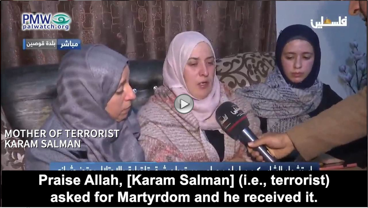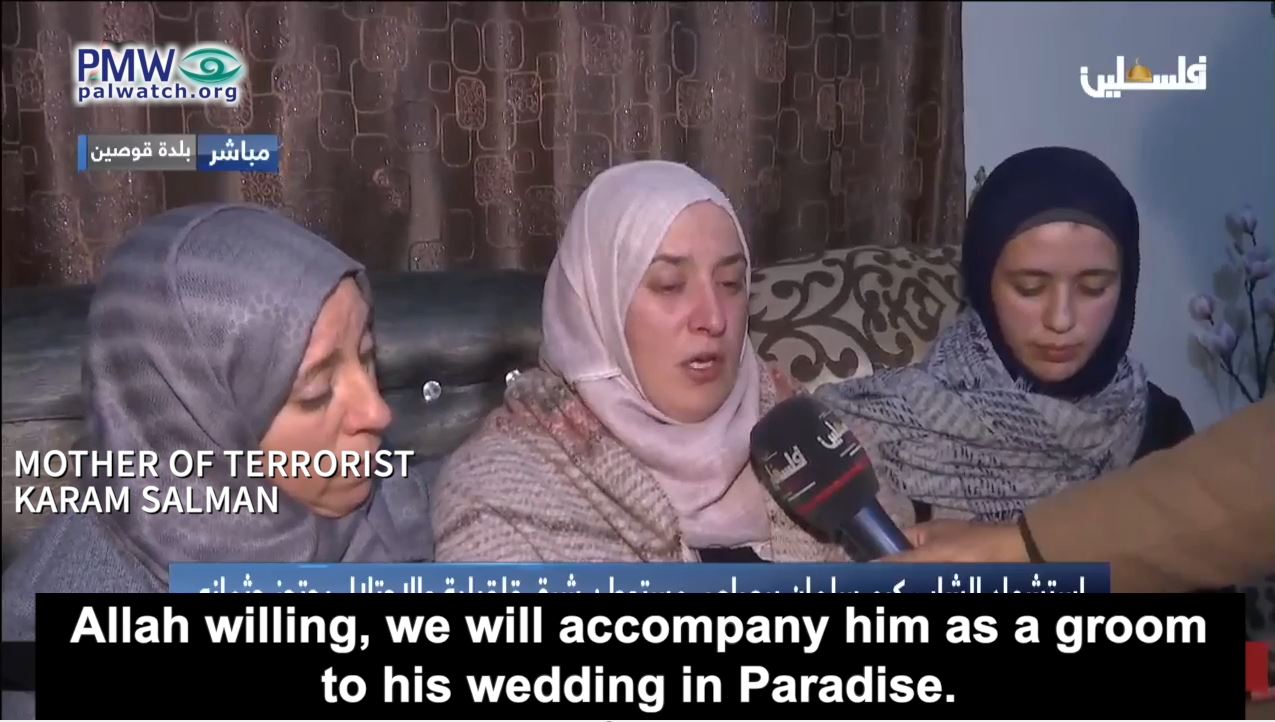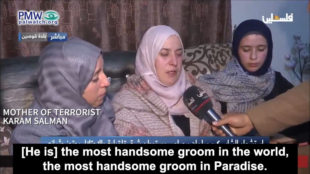Mother of terrorist Karam Salman: “Praise Allah, [Karam] asked for Martyrdom and he received it. He is the most handsome groom in the world, the most handsome groom in Paradise. The angels will accompany him to his wedding… we will accompany him as a groom to his wedding in Paradise.”