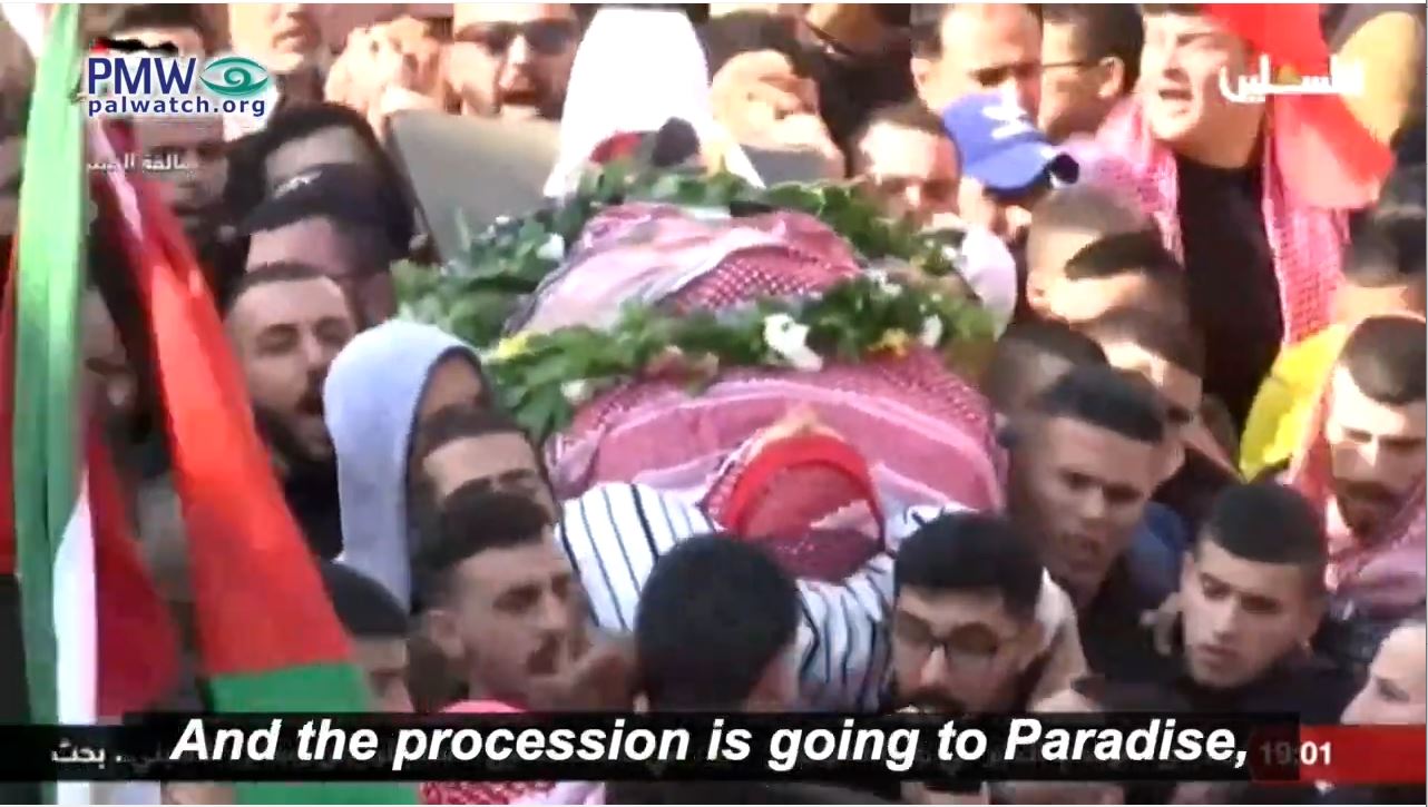 At the funeral of a Palestinian terrorist who was shot and killed when he accelerated and rammed his car into an Israeli police car, a speaker summed up in one sentence the underlying cause of the recent months’ rise in the number of Palestinian deaths. According to the speaker, Palestinians are happy to die as Martyrs through attacks against Israel: “We love death like our enemies love life.” He also praised Palestinian mothers for celebrating when their children die as “Martyrs”: