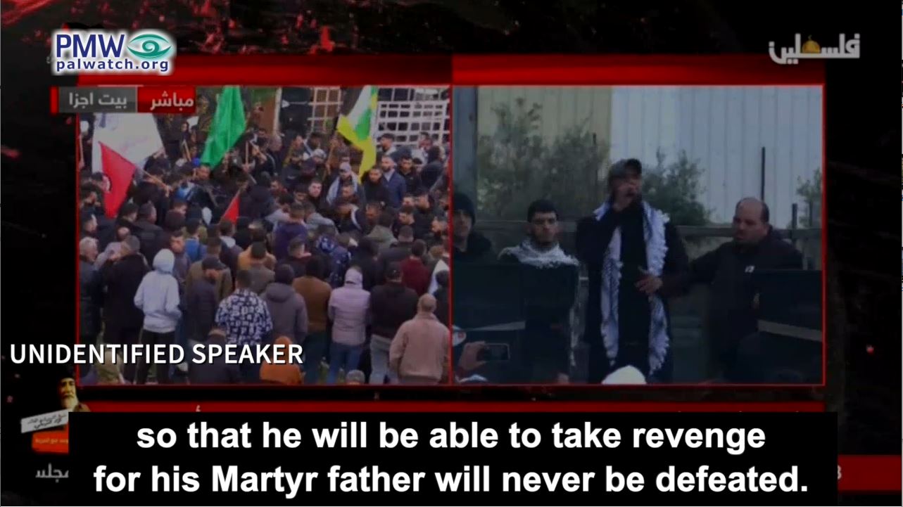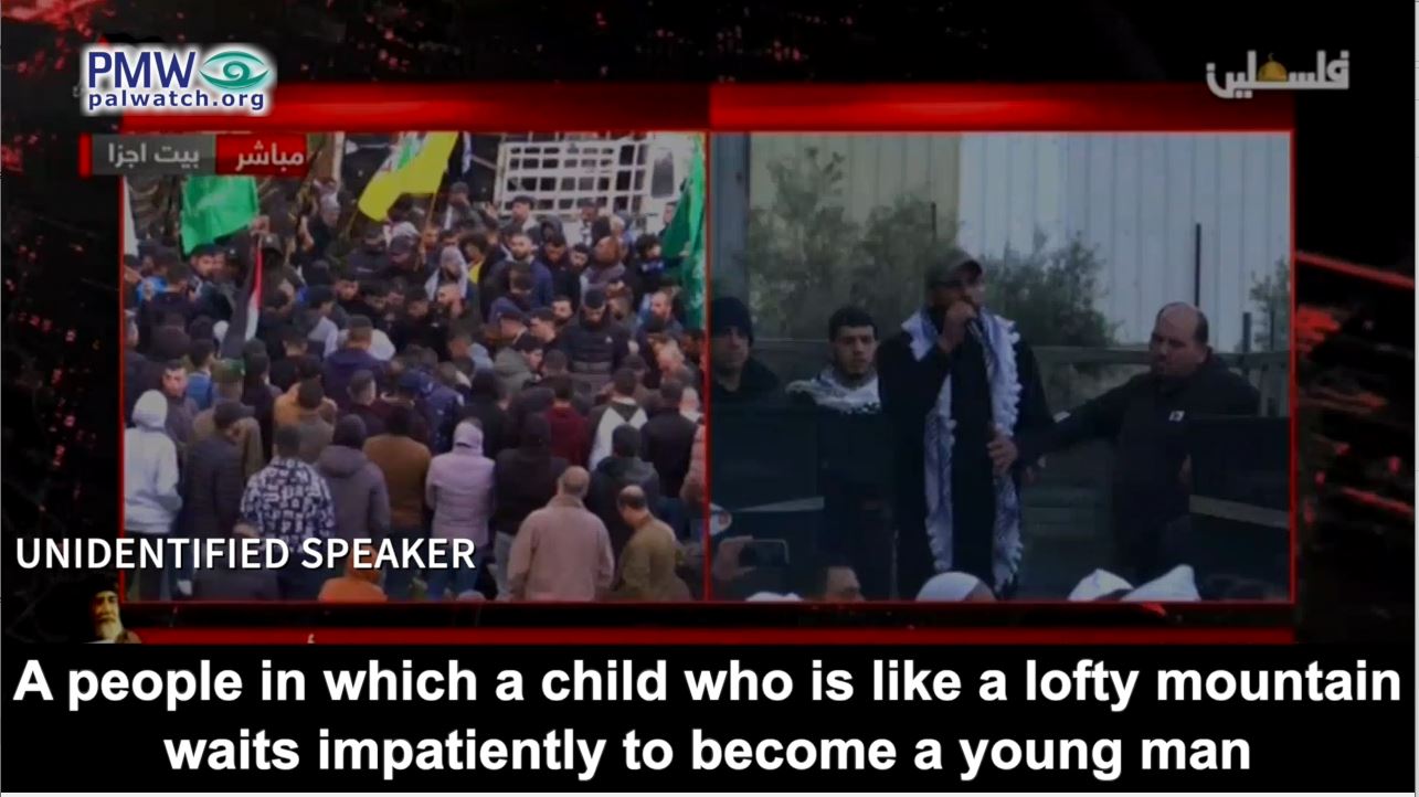 Speaker at funeral: “This people will not be defeated. A people in which a mother accompanies her Martyr son with sounds of joywill never be defeated. A people in which a child who is like a lofty mountain waits impatiently to become a young man so that he will be able to take revenge for his Martyr father will never be defeated. We love death like our enemies love life.”