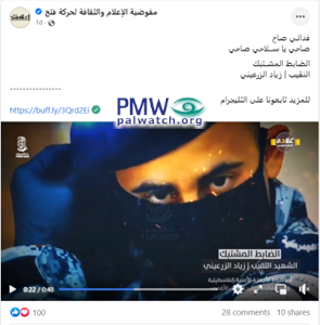 Fatah also posted about specific members of the PA Security Forces involved in terror, for example as below where one of the terrorists who died in Jenin is referred to as “the confronting officer”: