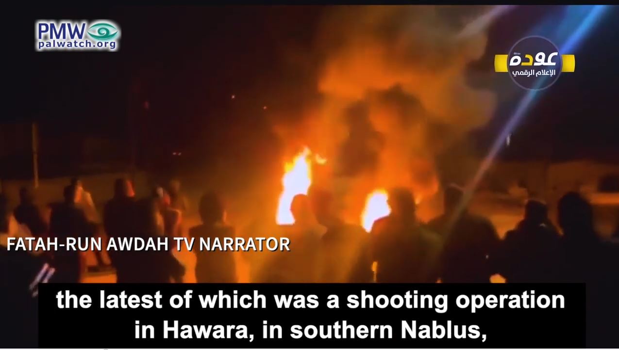Fatah-run Awdah TV narrator: “Since the start of the current year [2023], in the West Bank [there have been] more than 2,750 acts of resistance (i.e., terror attacks) against the occupation that have led to the killing of 12 Israelis,the latest of which was a shooting operation in Hawara, in southern Nablus, which led to the killing of 2 Zionists (i.e., murder of 2 Israelis). In January alone more than 1,448 acts of resistance were carried out, (“Allah is greatest!” is heard in the background -Ed.) including 159 shooting operations and armed confrontations with the occupation forces, while the number of operations of planting or throwing explosives reached 55…”