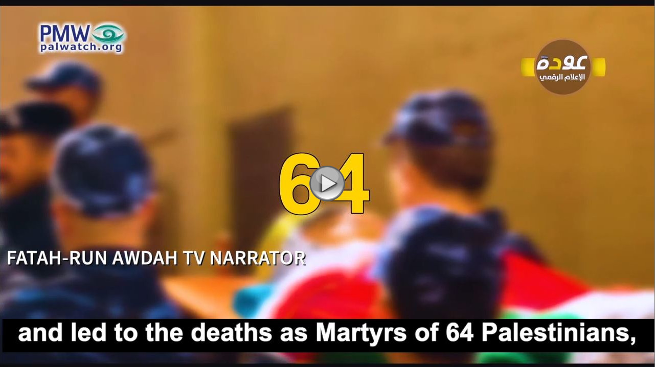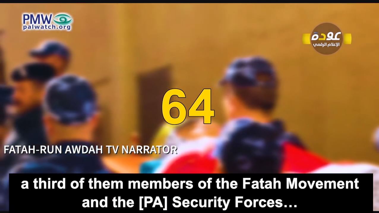 Fatah-run Awdah TV narrator: “The occupation’s crimes escalated from the start of the year… and led to the deaths as Martyrs of 64 Palestinians, a third of them members of the Fatah Movement and the [PA] Security Forces… Thus, the members of Fatah and the Security Forces form the core and the arms of the resistance groups in the West Bank, together with the other Palestinian factions.”