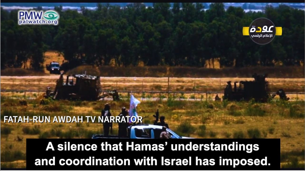 Fatah-run Awdah TV narrator: “In the Gaza Strip the situation was different, because the yield of the resistance is 0. Look and see Hamas’ ongoing policy of tightening its grip against the resistance and preventing it from carrying out its legitimate right in defending our people… The resistance is burning under PA rule and has ceased to exist under Hamas rule... How long will the absence of the factor of resistance continue in the shadow of the violent Zionist attack, and will the factions attempting to set out from the cover of silence in the Gaza Strip succeed? A silence that Hamas’ understandings and coordination with Israel has imposed.”