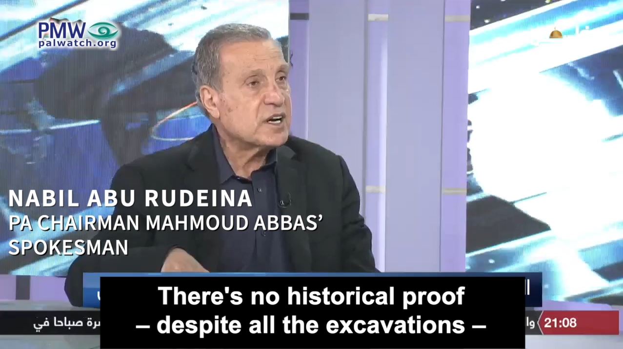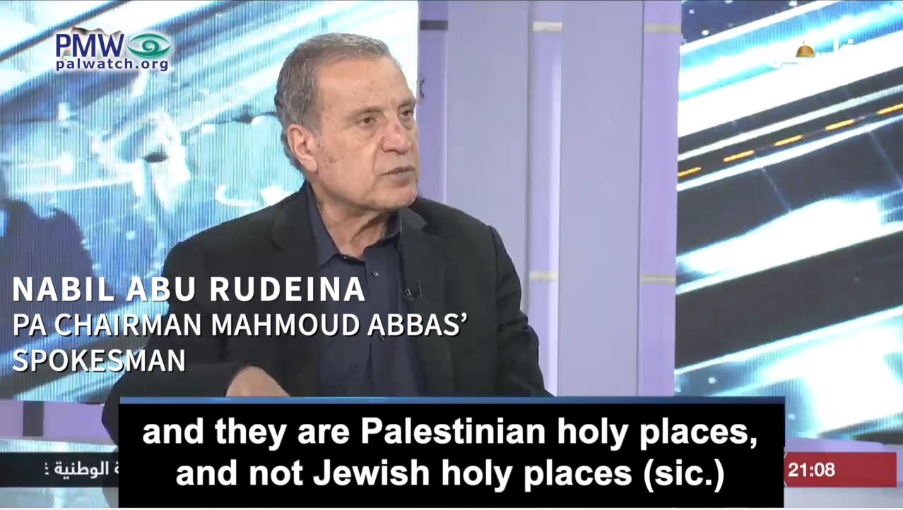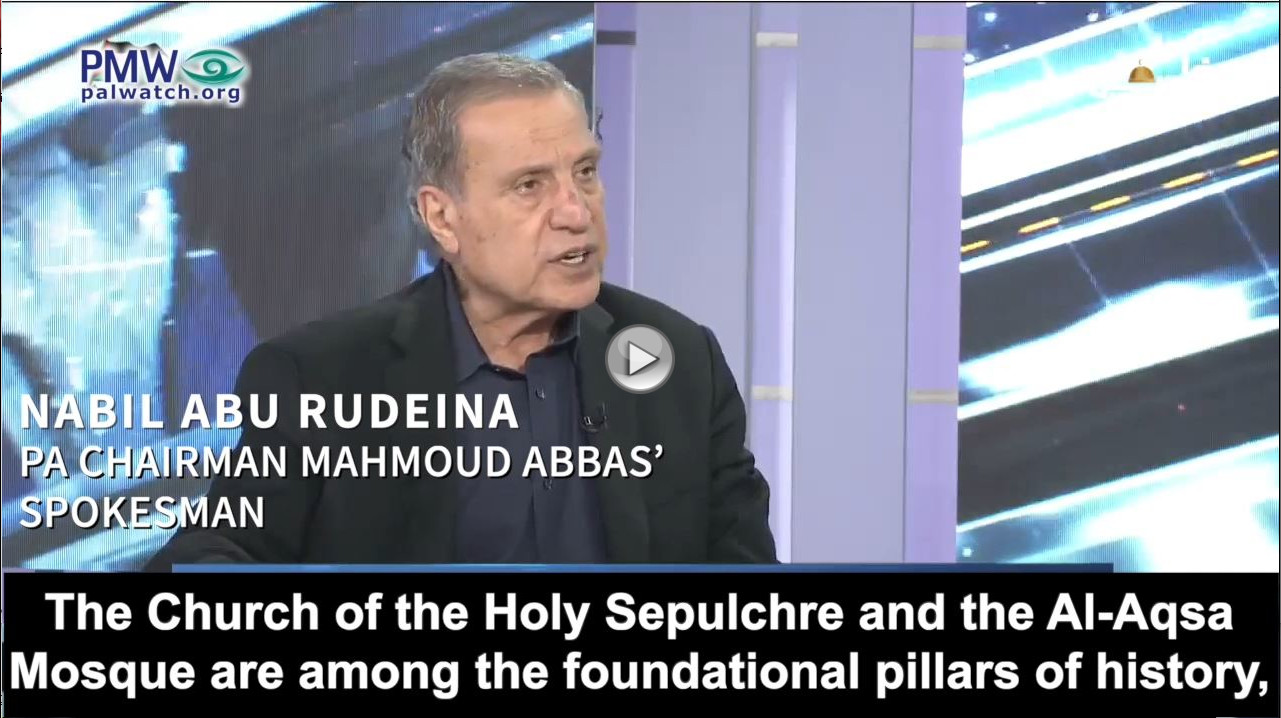 PA Chairman Mahmoud Abbas’ Spokesman Nabil Abu Rudeina: “The Church of the Holy Sepulchre and the Al-Aqsa Mosque are among the foundational pillars of history, and they are Palestinian holy places, and not Jewish holy places. There is no historical proof – despite all the excavations – that [the Jews] had any kind of presence in this land.”