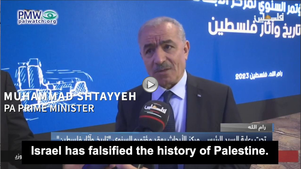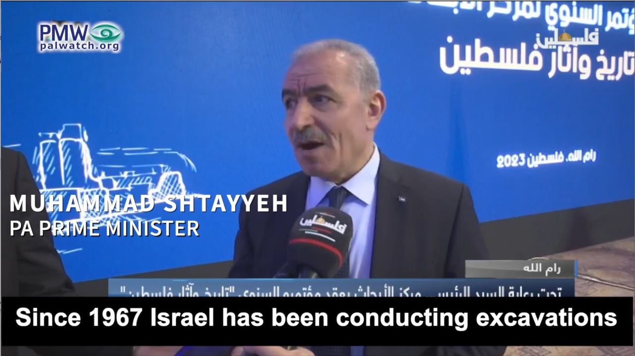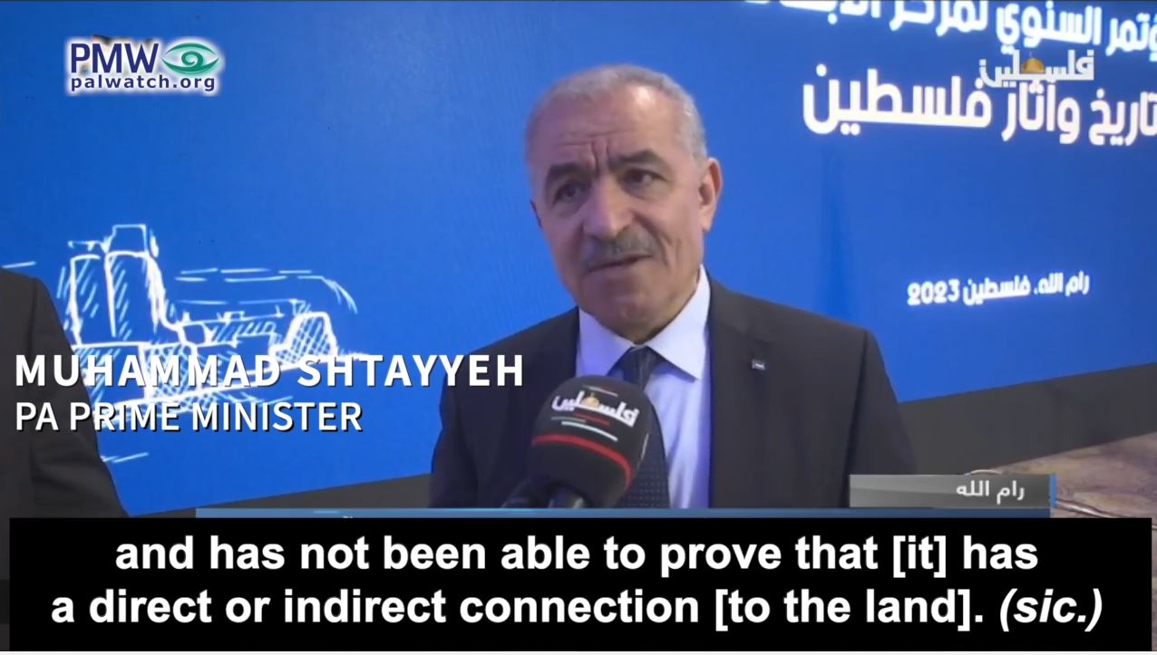 PA Prime Minister Muhammad Shtayyeh: “Israel has falsified the history of Palestine. Since 1967 Israel has been conducting excavations and has not been able to prove that [it] has a direct or indirect connection [to the land].”