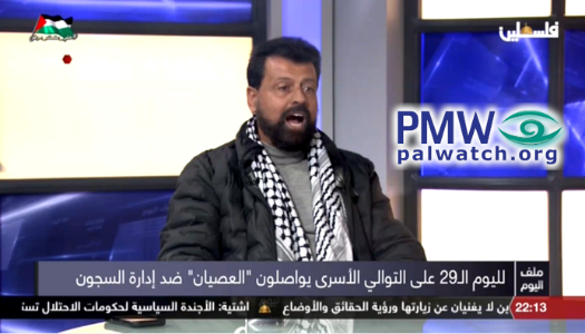 Follow-up Commission for Prisoners’ Affairs Director Amin Shuman: “On this day, Red Tuesday- which is the name that the supreme emergency committee in the prisons gave it, because this day matches the date of the execution of three heroes of Palestine during the Al-Buraq Rebellion (i.e., the 1929 Arab Riots) at the time of the British Mandate of Palestine, when the Mandate authorities and the British occupation of Palestine executed three heroes Muhammad Jamjoum, Ataa Al-Zir, and Fuad [Hijazi] (i.e., terrorist murderers).”