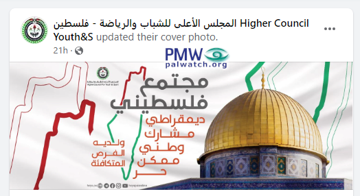 The same map deleting Israel appears on a new cover photo on the PLO Supreme Council for Youth and Sports’ Facebook page: