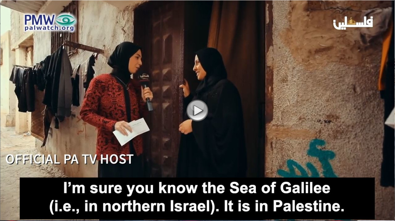 Official PA TV host: “I’m sure you know the Sea of Galilee (i.e., in northern Israel). It is in Palestine. You know it, right?”